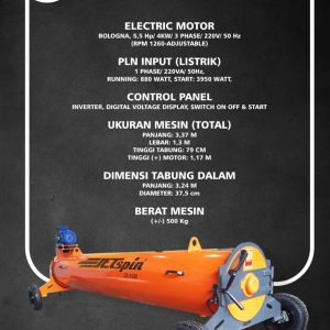 • 1 (satu) unit Mesin Pengering Karpet JETSpin CR-7500 Carpet Spinner (panjang 3,2 m, 7,5 HP, kapasitas 75 kg)